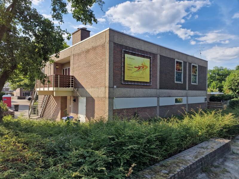 We kerken in het voormalig Rode Kruis gebouw, tegenover het oude treinstation, in de wijk Bargeres.